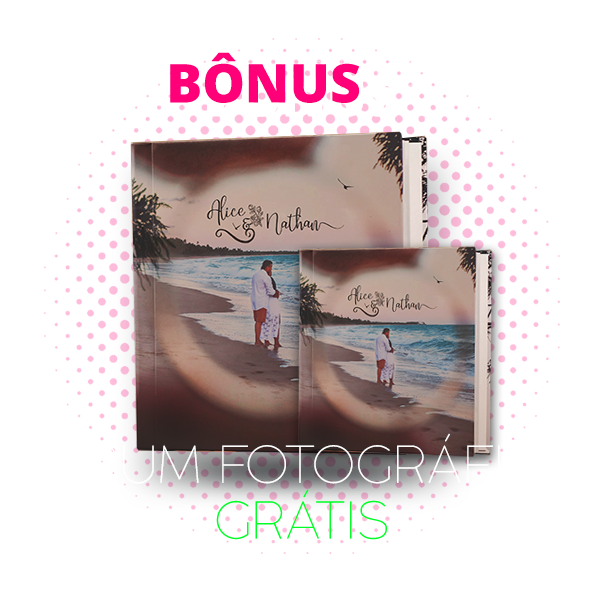 Na contratação de qualquer pacote acima do pacote Platinum, leve totalmente de graça um Álbum Fotográfico no tamanho 15x21 com 10 làminas. Imagem meramente ilustrativa, favor contatar Bruno Andrade para mais informações.